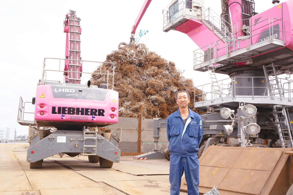 重機オペレーターとして、会社敷地内にあるヤードの仕分け作業がメインの仕事です。仕事の流れとしては、大型トラックで運ばれてきた荷物を重機で荷下ろしし、鉄や非鉄など、大まかな種類ごとに仕分けをします。